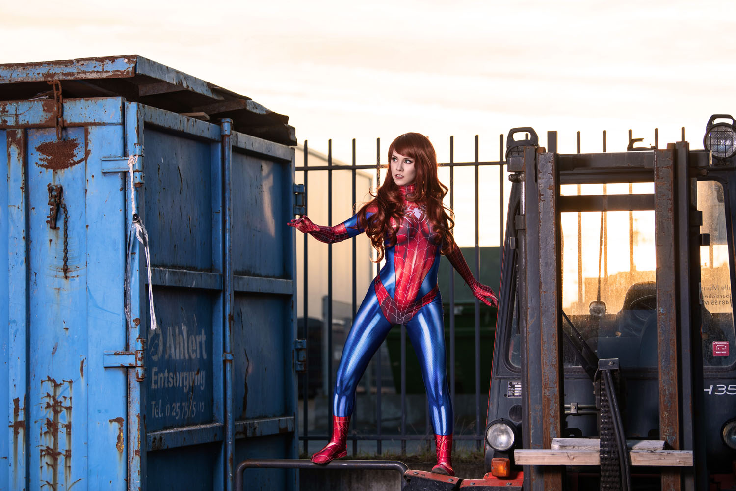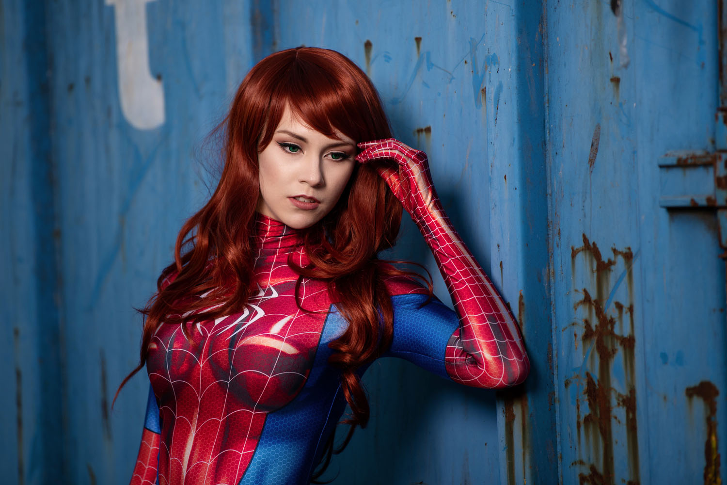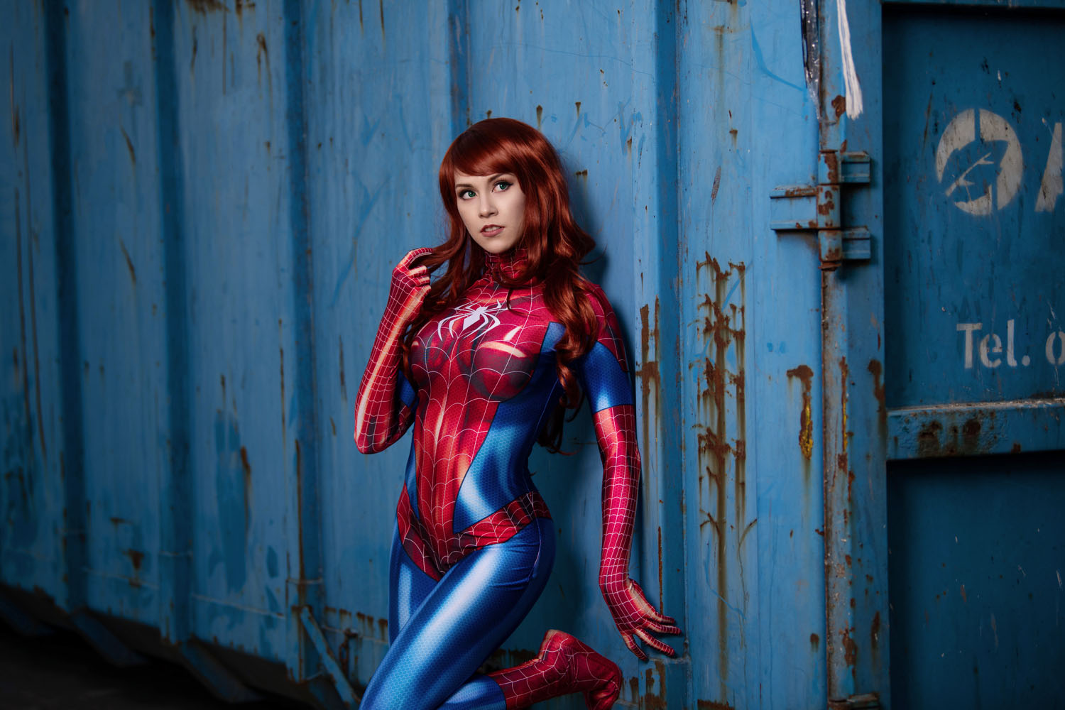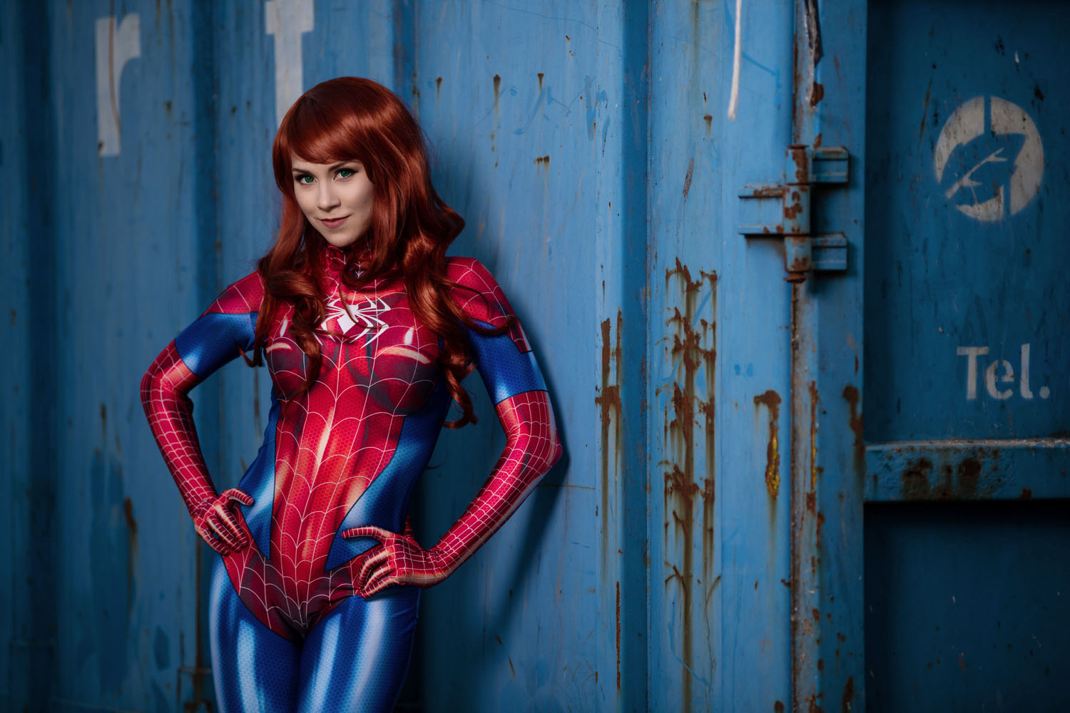 Cosplay der Mary Jane aus dem Spiderman-Universum.