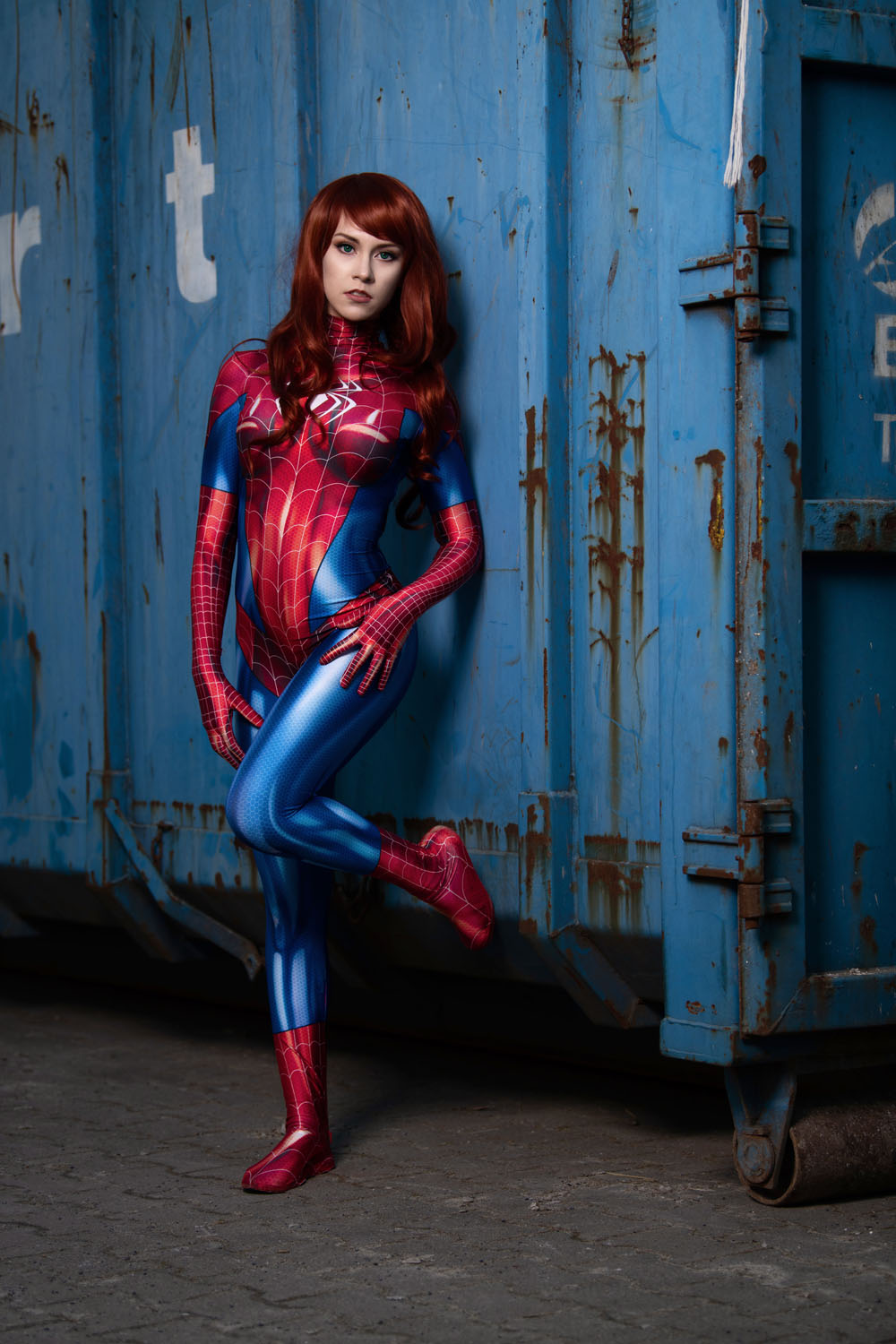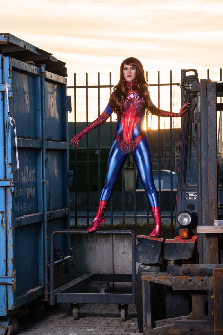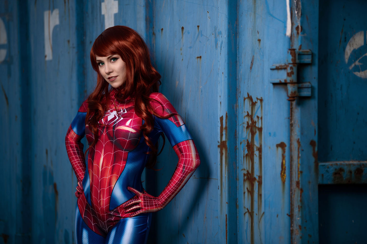 Cosplay der Mary Jane aus dem Spiderman-Universum.
