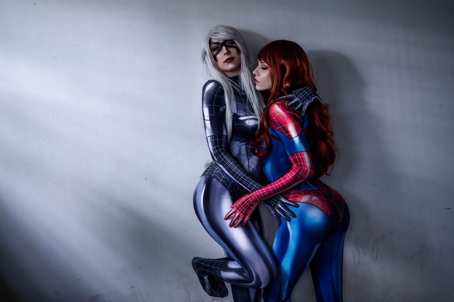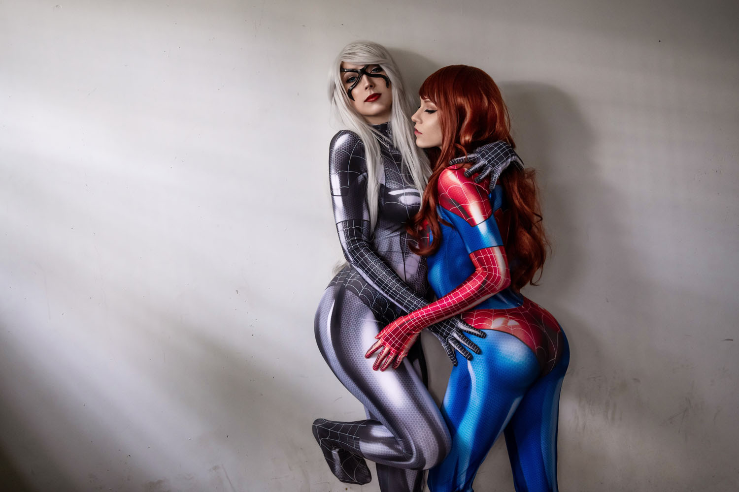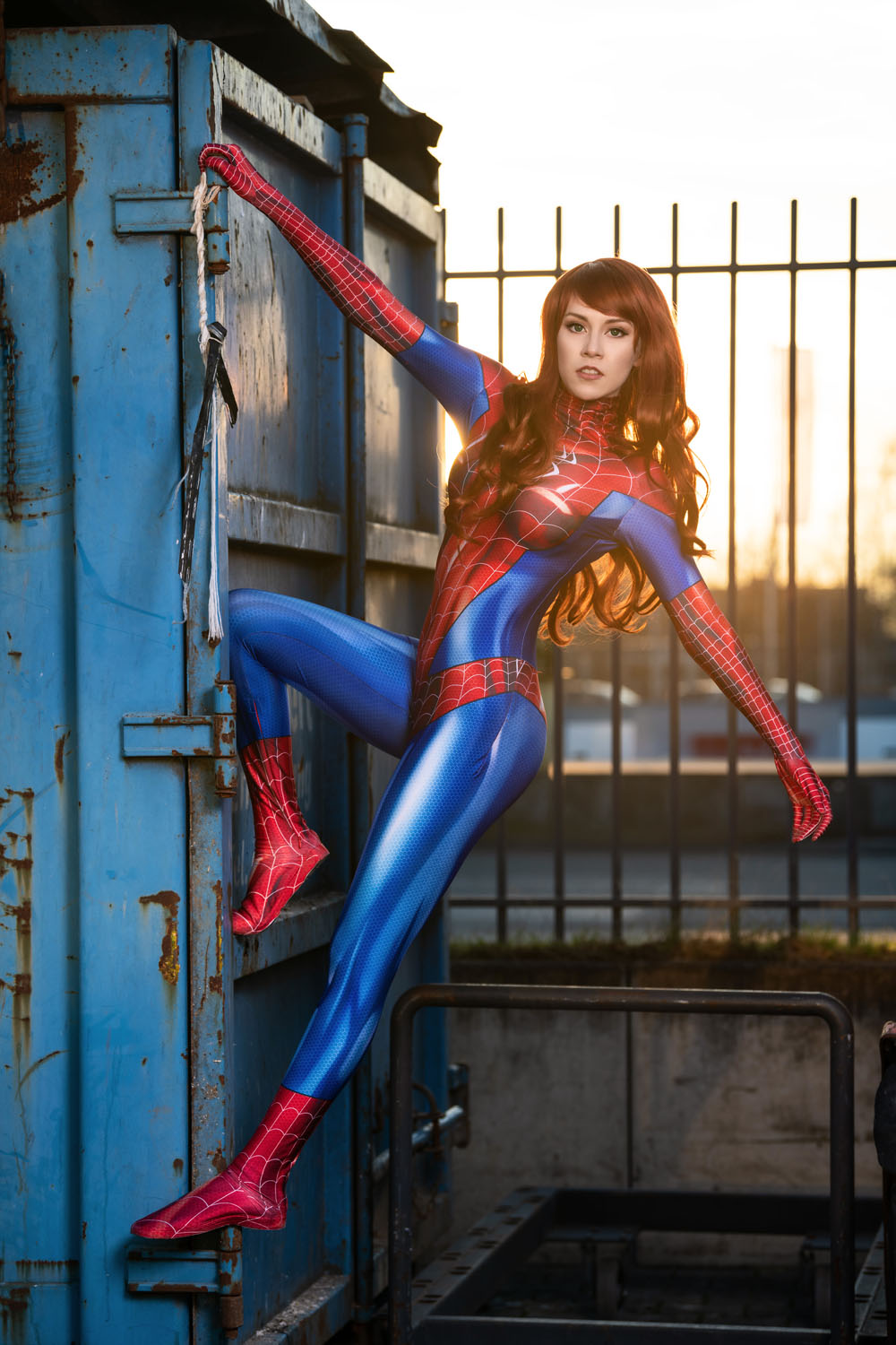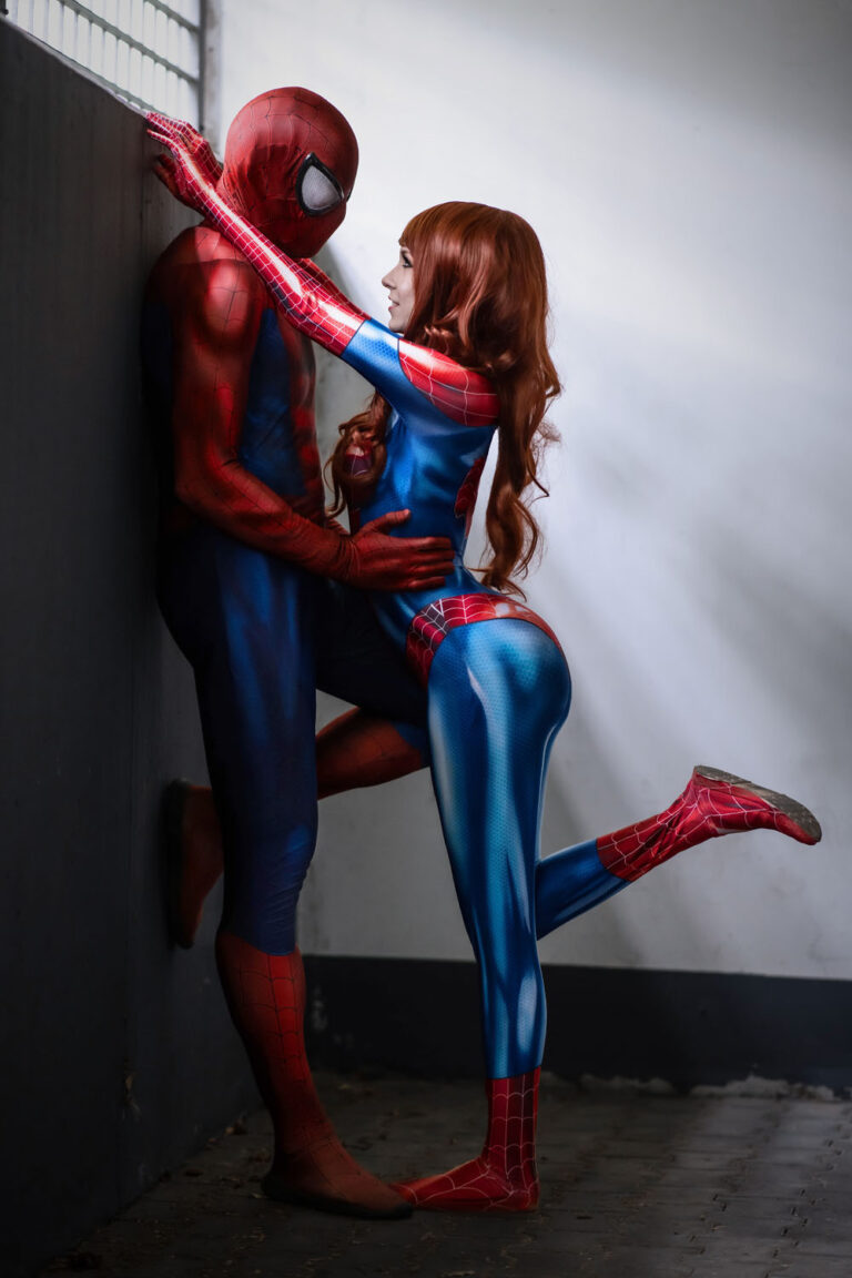Cosplay der Mary Jane aus dem Spiderman-Universum.